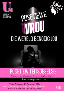 Daar is niks wat so eensaam is soos ‘n Vrou wat begin twyfel in haar doel en haarself nie, en dus haar posetiewiteit verloor nie. Want hierdie wereld van ons maak staat op ons Vroue, wat dit aanmekaar kan hou. Ons samelewing is hard, en Sosiale Media maak meer depressie as goed, Hoe hanteer ons dit? Al die negatiwiteit wat daagliks voor ons gegooi word… Kom ons gesels en laat daardie happer plekke verdwyn!